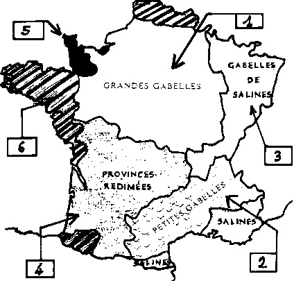 3 - La taxe atteint 5 fois le prix de la marchandise et la consommation est imposée. Ces pays étaient ainsi nommés parce qu'ils tiraient leur sel, non pas des marais salants, mais des salines de Franche-Comté et de Lorraine.